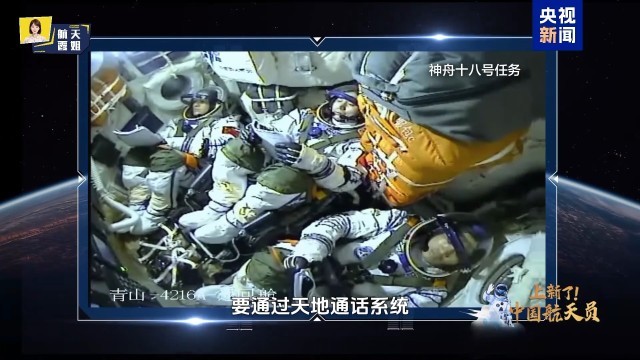 崔霞:还有一个知识点,我们的航天员进到返回舱里,他们都是“躺”着上太空的。他们的座位叫椅盆,在返回舱里,躺下来之后,就要做一系列的检查。他们每人有一个飞行手册,根据手册,航天员们要逐一对舱内的各种设备进行检查,确认“仪表盘绿灯全亮”;要对舱门进行密封性检查,确认返回舱舱门关闭并完全密封,防止发射过程中出现压力泄漏。此外,要通过“天地通话系统”,与地面指挥完成最后一次语音确认。在发射前10分钟,要启动舱内氧气循环系统等。