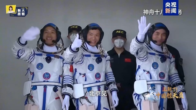 崔霞:航天员在进飞船之前,还有一个非常经典的动作,他们都会对着镜头打招呼。