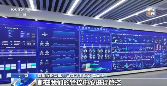 首钢股份冷轧公司首席工程师 李凤惠:这是我们的智慧管控中心,智慧管控中心是我们公司核心的管控大脑,所以我们所有的生产、质量、仓储、物流到能源环保安全,所有的这些业务都在我们的管控中心进行管控。