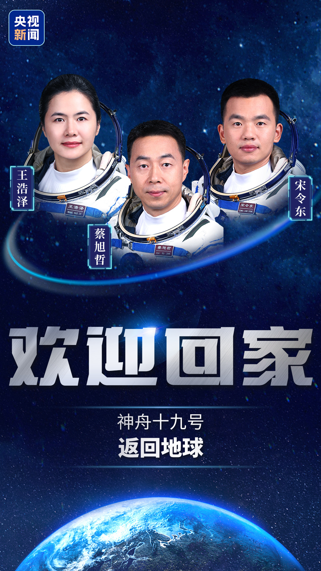 神舟十九号航天员乘组平安抵京。