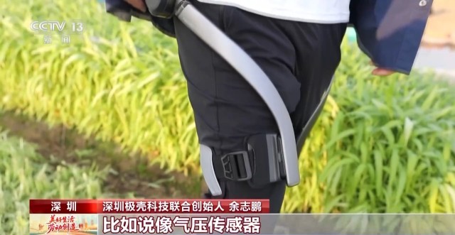 科技的助力让干农活儿变得更轻松。记者又变身成了田里的“赛博”农民,技术团队介绍,这些正在测试的外骨骼装备,可以帮助我们提升70%的腿部力量,降低30%的身体能耗,甚至还可以降低30公斤的背部负重。繁重的工作或者长途跋涉轻松了不少。