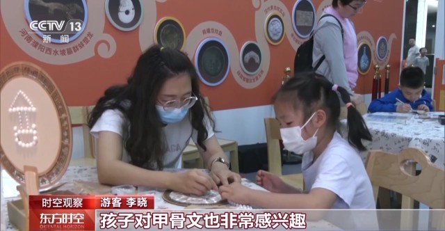 游客 李晓:带孩子来了解一下中国汉字的发展历程,孩子对甲骨文也非常感兴趣,孩子有机会能够亲手操作一下,感受一下中华文化的博大精深,体会一下文化的魅力。