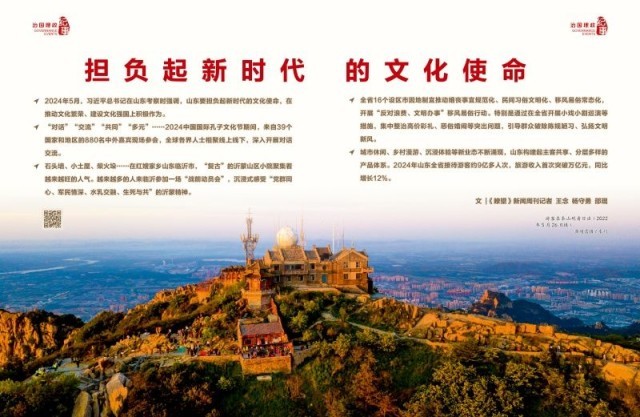 2024年5月,习近平总书记在山东考察时强调,山东要担负起新时代的文化使命,在推动文化繁荣、建设文化强国上积极作为。