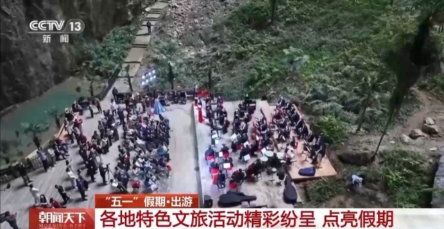 这两天,一场前所未有的“天坑”音乐会也在湖北宣恩矅天眼景区震撼上演,为游客带来了一场自然奇观与人文艺术跨界碰撞的视听盛宴。地质奇观与交响音乐的碰撞,解锁了假期新玩法,也让众多游客沉浸其中。