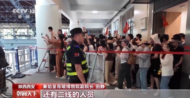 秦始皇帝陵博物院副院长 田静:我们秦始皇帝陵博物院除了一线的人员全员上班之外,还有二线的人员支援到一线的各个岗位上去,保证畅通,疏导观众。