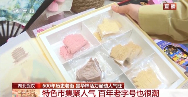 老字号在昙华林也变得很潮,比如说,非遗糕点融入了樱花、建筑等元素,很有设计感,很多人买回去做伴手礼。明信片,冰箱贴等特色文创每天能卖出上万件。热销的文创和美食,也带动了街区的消费活动。