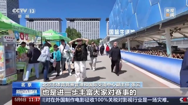 北京市体育竞赛管理和国际交流中心副主任 张云:我们也是进一步发挥“赛事+假日”这样的叠加效应和乘数效应,在场馆的南广场搭建了第二观赛现场,现场有观赛大屏,还有一些市集和体育运动的体验活动,也是进一步丰富大家对赛事的获得感和体验感。