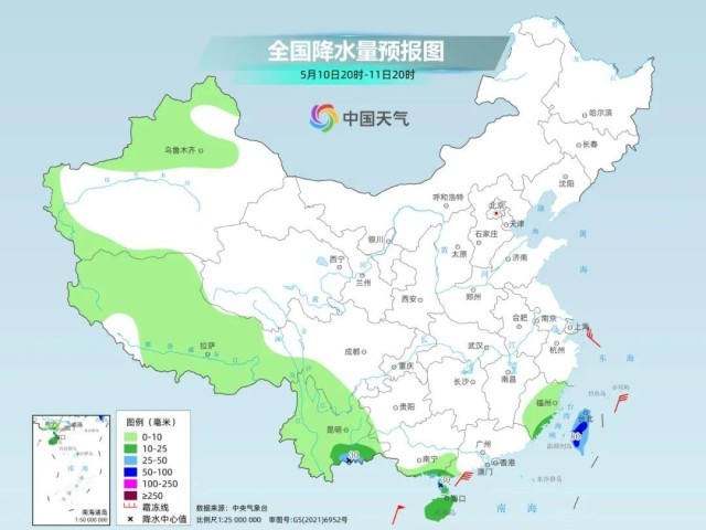 后天,降雨进一步向南收缩,主要在华南东部和南部还会有一些短时强降水天气出现。