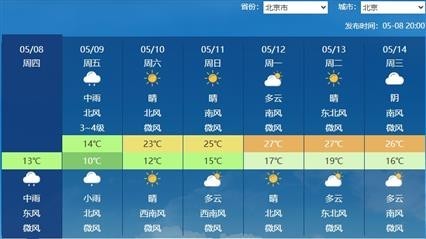 城市中,像是北京,明天午后气温将会倒降,比凌晨还低,只有10℃左右。提醒大家早晨出门多带一件外套,下班时可能会用到。