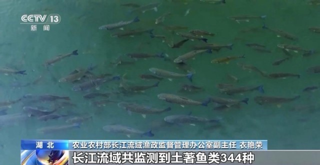 农业农村部长江流域渔政监督管理办公室副主任 衣艳荣:监测数据显示,2021年到2024年,长江流域共监测到土著鱼类344种,比禁渔前2017年到2020年增加36种,长江流域重点水域水生生物完整性指数提升明显。