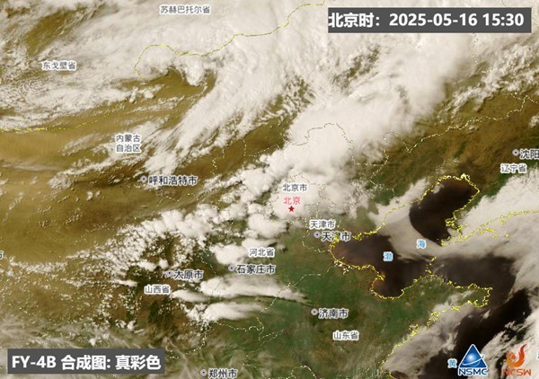 从今天下午的云图来看,南方云层厚实且有不少对流旺盛的“小突起”,像煮沸的水面冒出的泡泡(上图)。而华北一带则出现一串系统组织化发展的雷暴云团(下图)。
