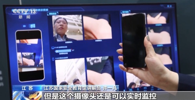 江苏国家安全教育馆讲解员 许一凡:包括手机处于息屏的状态,依然可以通过这个手机的摄像头观察周围发生的一切。即使手机处于关机的状态,它依然是可以监控到的。比如我们现在立马把手机关机,但是这个摄像头还是可以实时监控。包括这个手机还可以录音。这个窃密者是持续地监控这个手机的使用者。