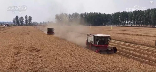 总台央视记者 田琪永:我现在是在河南省驻马店市,目前这里的1100多万亩小麦正大面积集中成熟,当地组织了3万多台联合收割机抓紧抢收,确保小麦收在适收期。