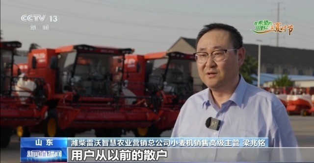 潍柴雷沃智慧农业营销总公司小麦机销售高级主管 梁兆铭:用户从以前的散户逐步升级到现在以这些合作社、家庭农场为主的组织客户。这部分用户的需求正在向大喂入量、高效率、高可靠性、智能化、高舒适性等方向发展。