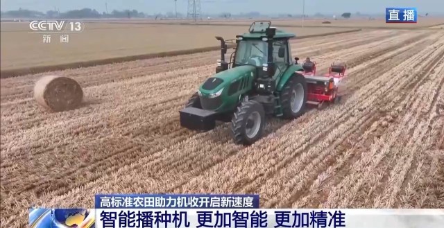 高标准农田在“三夏”期间还方便多种农机协同作业。现场不仅有联合收割机,还有搂草机、打捆机、玉米播种机等等。这家农机服务队的负责人表示,以前一片地从夏收到夏种至少要五六天。但现在,前脚麦子刚刚收完,后脚播种机就可以把玉米种子播种进去。
