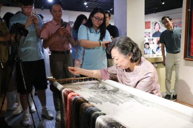 近日,在第二十一届中国(深圳)国际文化产业博览交易会上,一幅近九米长的夏布绣《长江万里图》惊艳亮相,吸引了众多目光。这幅巨制由国家级非遗夏布绣代表性传承人张小红及儿媳吴婉菁带领创作团队耗时13个月完成。十几种针法和三十多种颜色的丝线在作品中交错,用独特的刺绣语言展现了祖国的壮阔山河。