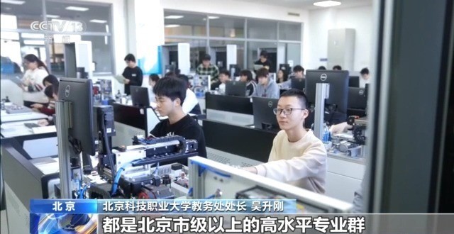 北京科技职业大学教务处处长 吴升刚:这6个专业也是我们精挑细选出来的,主要是考虑北京的高精尖产业布局,以及经开区的四大支柱产业布局,相应的产业领域的头部企业都有多年的合作,都是北京市级以上的高水平专业群。我们的人才培养目标定位是宽基础、高技能、重交叉、善创新,这样我们的学生在就业的时候,比普通专科学生的可持续发展能力更强,比普通本科学生的实践能力更强,到企业以后更容易上手。