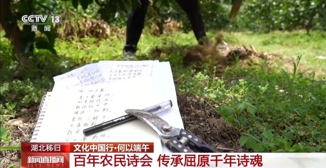 承袭千年诗风,传承屈原精神,诗社成员不仅吟唱诗歌,还作诗。对于这些农民诗人们来说,每天一手锄头、一手诗歌,是大家平日的写照。今年75岁的黄家兆,60岁时加入诗社,并学习作诗。仅靠着老社员的口授,初中文化的他硬是背下了百余个诗词格律。有时在田间灵感来了,顺手捡来的废纸都可以成为他写诗的地方。十几年来,黄家兆共创作了一百二十多首诗歌。田间的橙子,林中的啄木鸟,四季的劳作,丰收的时刻,一首首诗歌记录着恬静的岁月,更记录着为美好生活的奋斗。
