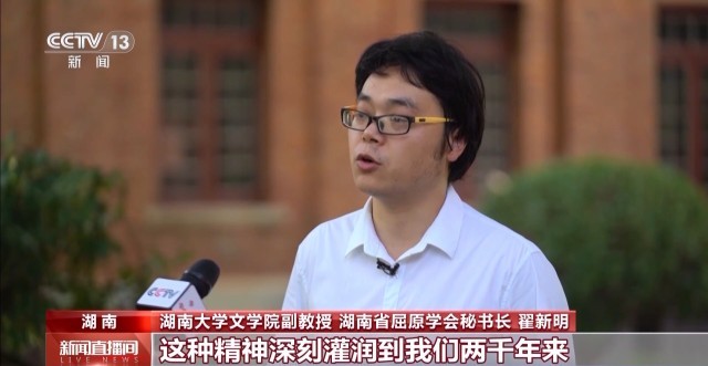 湖南大学文学院副教授 湖南省屈原学会秘书长 翟新明:他的清醒和独立的精神,深刻地灌润到我们两千年来中华民族的精神血脉之中。正是因为这种清醒和独立的精神,才能保持我们自身的民族特色一直到现在。