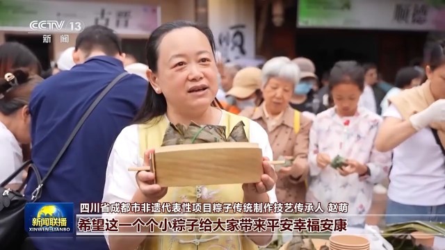 四川省成都市非遗代表性项目粽子传统制作技艺传承人 赵萌:邀请大家体验咱们中国的传统文化,希望这一个个的小粽子给大家带来平安幸福安康。