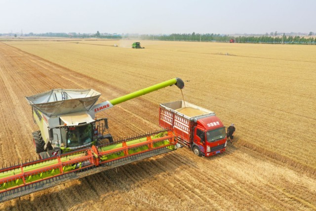 夏收、夏种、夏管是全年农作物种植承上启下的关键阶段。6月上中旬,北方主产区冬小麦进入集中机收阶段。记者在河南、山东、江苏等地看到,收割机开足马力驰骋在麦田中,一排排小麦被整齐地切割、脱粒……广袤农田一片繁忙景象。
