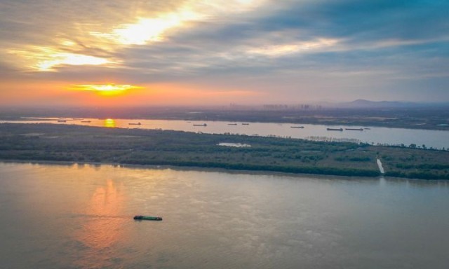 长江新济洲日落时分景色(2023年11月13日摄)。新华社记者 季春鹏 摄