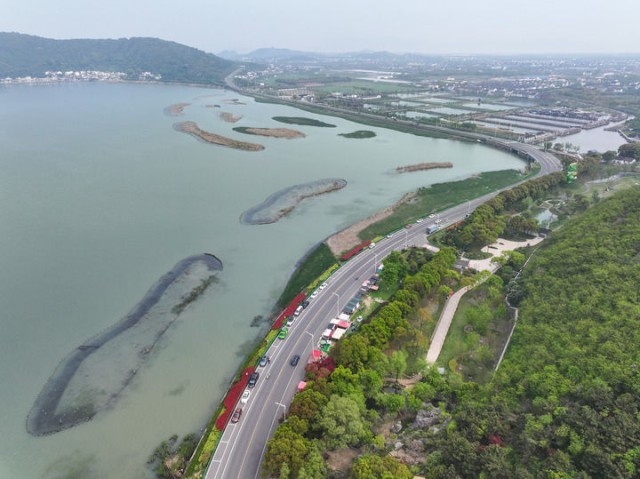 2024年4月11日拍摄的苏州市吴中区金庭镇环太湖湿地带修复项目。新华社记者 季春鹏 摄