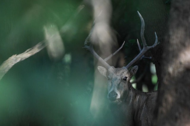 2024年10月28日在江苏省大丰麋鹿国家级自然保护区拍摄的麋鹿。新华每日电讯记者李博摄