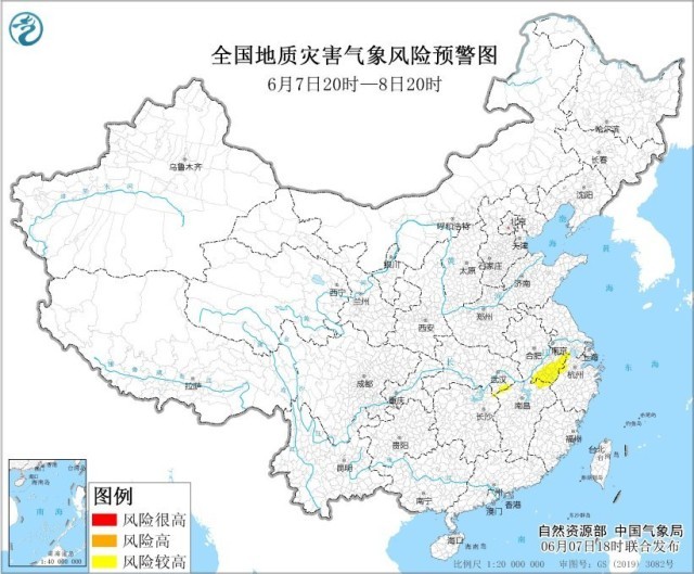 自然资源部与中国气象局6月7日18时联合发布地质灾害气象风险预警