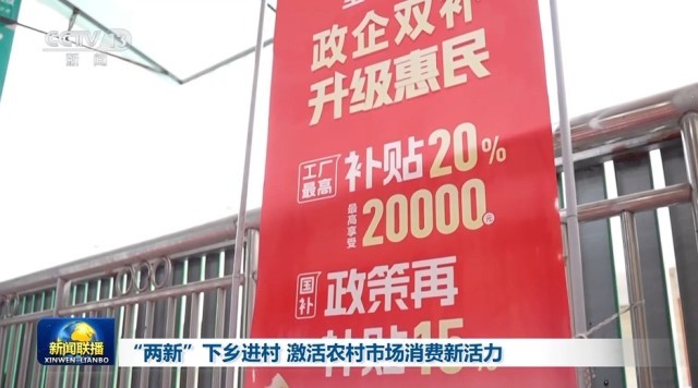 央视网消息(新闻联播):“两新”政策实施以来,各地通过扩大补贴范围、优化服务等措施,将实惠和便利送到乡村,激发农村市场消费活力。