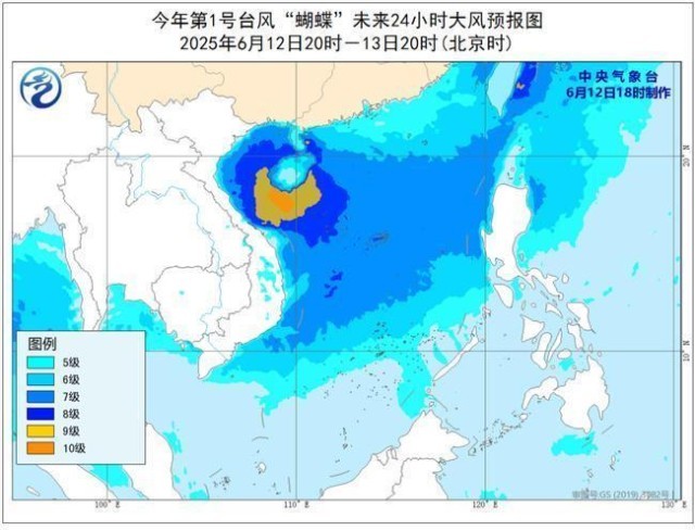 预计6月12日20时至13日20时,南海大部、北部湾、琼州海峡、西沙群岛、南沙群岛、中沙群岛、广东沿海、海南岛沿海、广西沿海将有6~8级风,阵风9~10级,台风中心经过的附近海域风力可达9~10级,阵风11~13级。