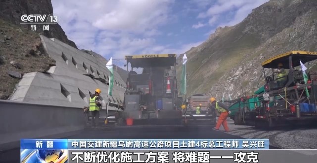 中国交建新疆乌尉高速公路项目土建4标总工程师 吴兴旺:桥面离山体最近的距离仅有2米,桩基和梁板架设工作困难,面对高寒、高海拔、无作业面等诸多挑战,不断优化施工方案,将难题一一攻克,为年底全线具备通车条件加油冲刺。