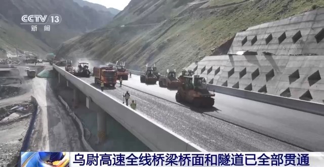 乌尉全线共有桥梁265座,隧道17座。截至目前,全线桥梁桥面和隧道已经全部贯通,正在进行路面铺设、机电、交通安全设施等附属工程施工。