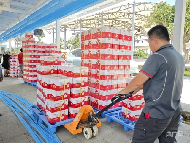 在永兴镇荔枝花海集散基地,一筐筐新鲜采摘下来的“荔枝王”经过称重、分拣、保鲜、打包等流程后装车发出,在严格品控和全程冷链保障下,让这份海南独有的甜蜜风味愈发飘香四方。