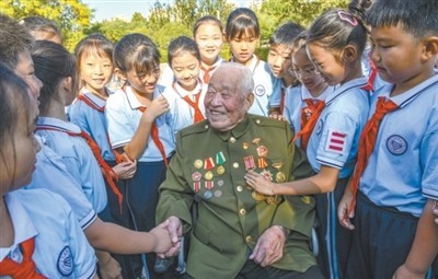 “爷爷,感谢您的讲述。”采访结束,记者与孙业满道别。孙业满笑着挥手后,又轻轻扶正了胸口的党员徽章。