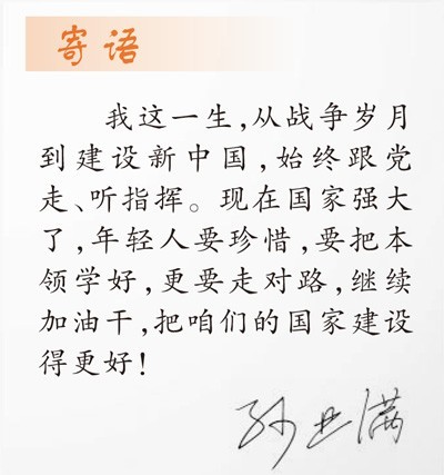 从抗日战争到解放战争,再到抗美援朝战争,孙业满历经大小战斗百余场,荣立战功10余次。这些年,虽然记忆力已大不如前,但时至今日,他仍然能一字不差地唱出当年的歌:“我们是新四军,我们是一家人,战斗在一起,生活也不分,同生死、共患难,大家一条心……”