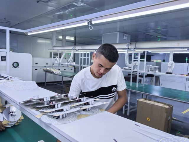 6月24日,新疆领航新能源科技发展有限公司的员工正在组装灯具。(新华社记者 顾煜 摄)