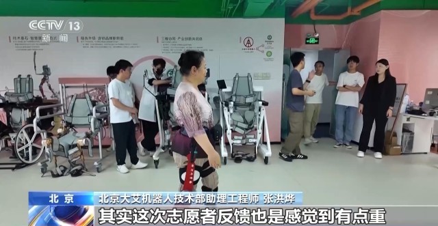 北京大艾机器人技术部助理工程师 张洪烨:在穿戴方面,老人其实更希望是让它更简单、更易上手,能自己独立完成穿戴。在配重方面,其实这次志愿者反馈也是感觉到有点重,我们后续应该是再减重。