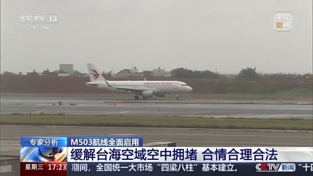中国社科院台湾研究所政治室副主任 张华:M503航线是位出我们祖国大陆东南沿海的国际民航线路,在2007年就被国际民航组织批准使用。M503航线的设置和启用实际上是合情、合理、合法。M503航线之所以被设置,最主要的原因就是为了缓解东南方向国际航线拥堵的这样一个状况。2015年的时候,我们祖国大陆正式启用了由北向南这样一个航路,在使用的时候实际上也向我们祖国大陆这边偏置了大概六海里这样一个距离,当时也是为了照顾台湾岛内同胞的这样一个关切。