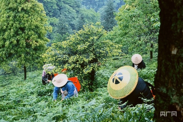 茶农在山间采茶(央广网发 赵子轩 摄)