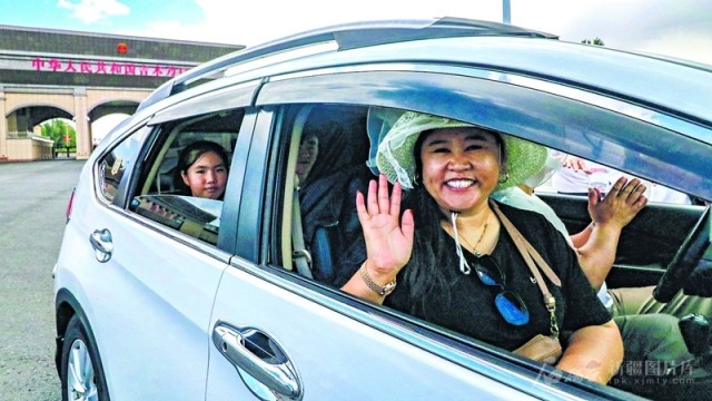 6月30日,游客乘坐私家车从吉木乃口岸出境旅游。得益于中哈免签政策和不断完善的口岸服务,今年前5月,吉木乃海关验放出入境人员超3万人次。