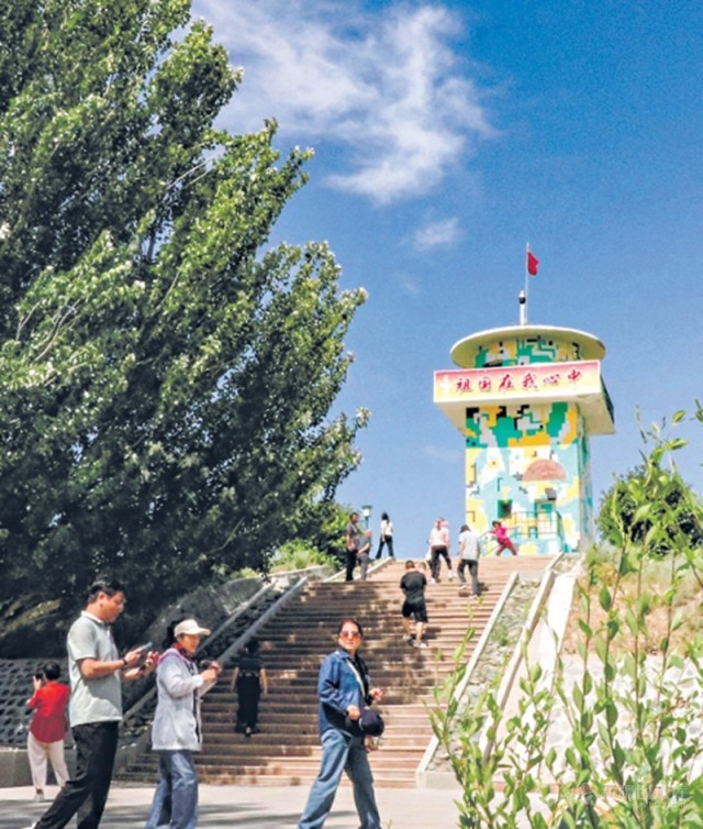 6月25日,游客在小白杨哨所参观。这个哨所坐落于裕民县巴尔鲁克山脚下,因歌曲《小白杨》而名声远扬,是全国知名爱国主义教育基地。