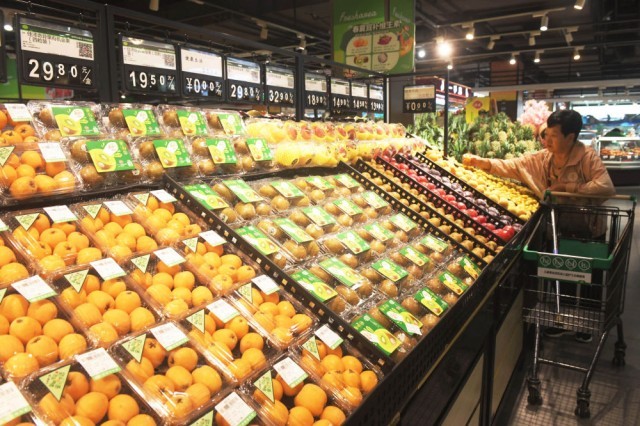 6月9日,顾客在河北省石家庄新乐市一家超市选购水果。新华社发(贾敏杰摄)