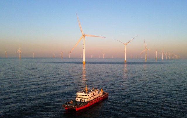 这是位于山东省莱州市海域的海上风电项目(2025年1月7日摄,无人机照片)。新华社记者 徐速绘 摄