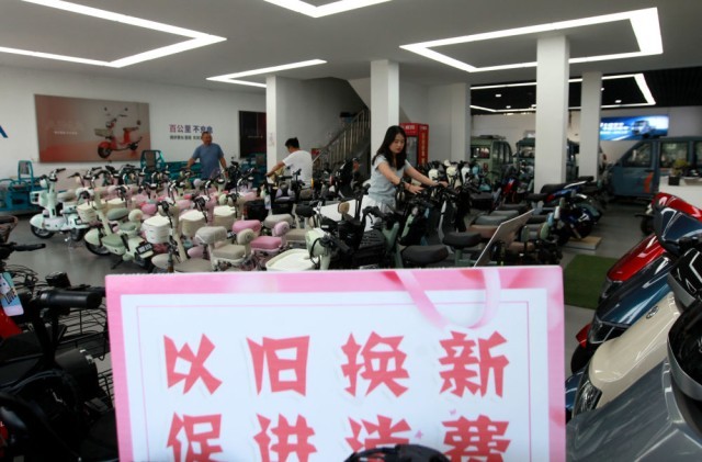 6月9日,消费者在山东省临沂市平邑县武台镇一家卖场选购电动车。新华社发(武纪全摄)