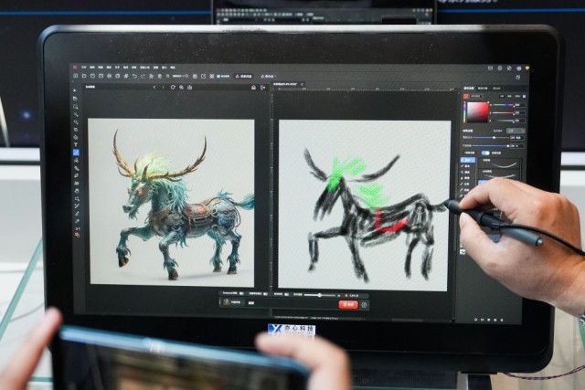 6月20日,在北京石景山区中关村科幻产业创新中心,工作人员展示悟空图像软件的AIGC功能。新华社记者 郑焕松 摄