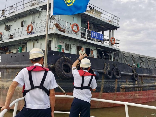 海事部门执法人员加大重点船舶动态管控。胡豪杰/摄
