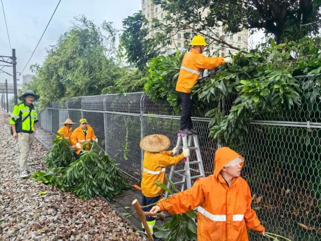 广铁集团组织砍伐侵限树枝,确保行车安全。广铁集团供图