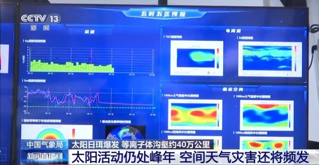 中国科学院国家空间科学中心副主任 李晖:从2024年到今年,太阳上大概有60余次X级别的大耀斑产生,一次X级别耀斑的能量大概相当于中国30万年用电量。这些X级的耀斑会引发日冕物质抛射,传播到地球以后会引起空间环境的剧烈扰动。去年5月,多个X级别耀斑引发特大磁暴事件,10月份也有超大磁暴引起了我国电离层大面积的减弱甚至消失,对通讯导航造成了很强的扰动和危害。