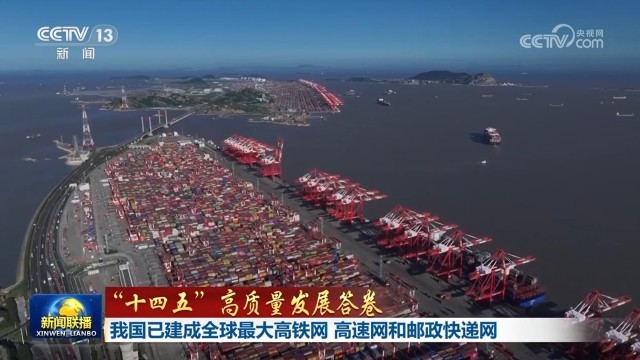 “十四五”期间,我国高铁营业里程达4.8万公里,占世界高铁总里程的70%以上;高速公路里程达19.1万公里;港口规模能力多年保持世界第一;航空服务覆盖全国92.6%的地级行政单元;快递业务量连续11年位居世界第一,每秒都有近6000个快递通过寄递网络在国内外流动。